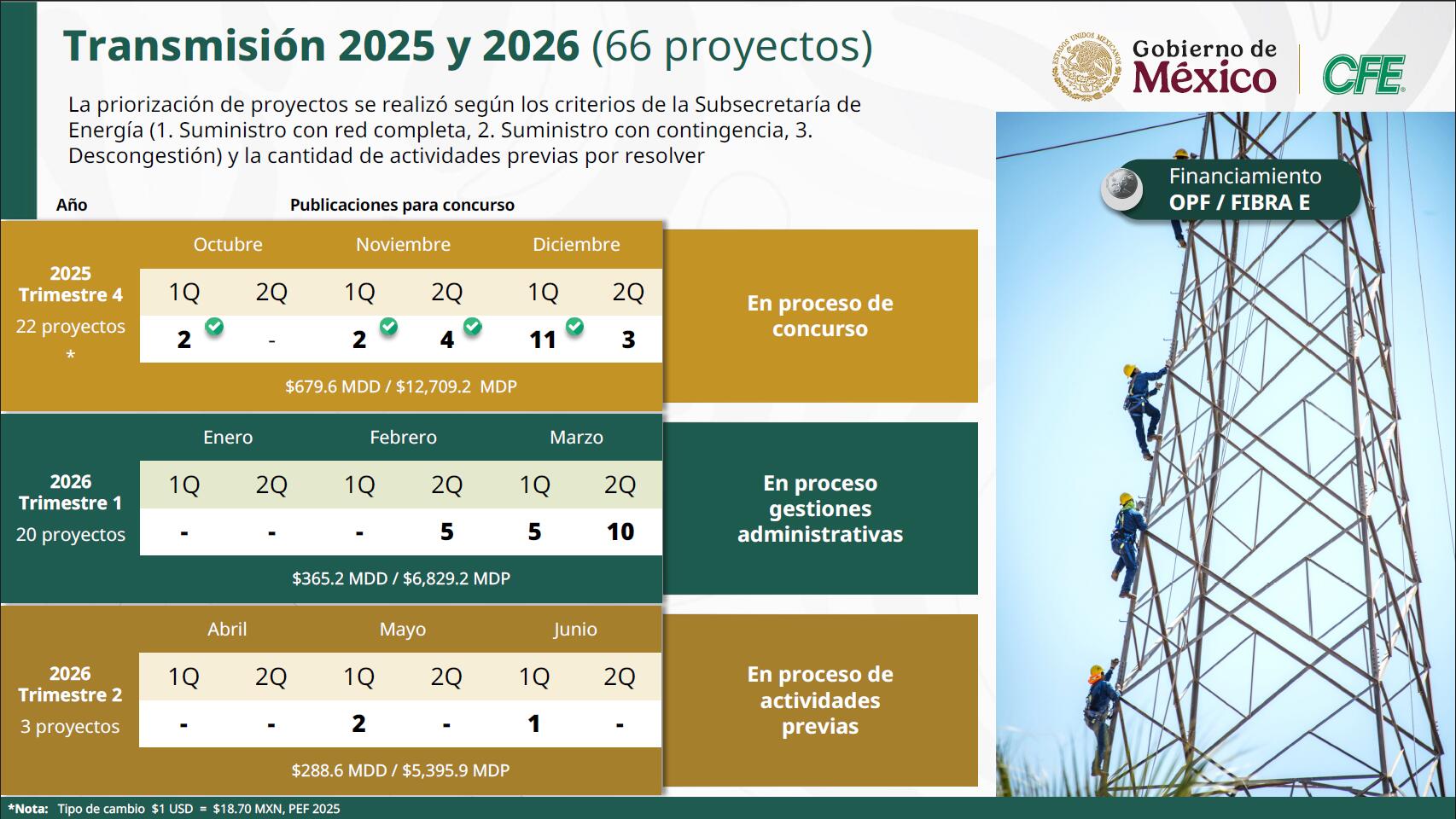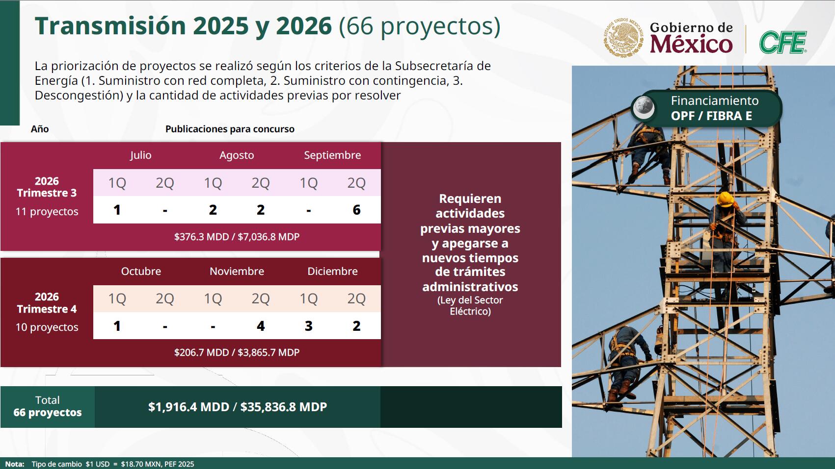 En transmisión, se presentaron 66 proyectos para reforzar la red existente y respaldar el crecimiento de la demanda, con desarrollo programado para 2025 y 2026.